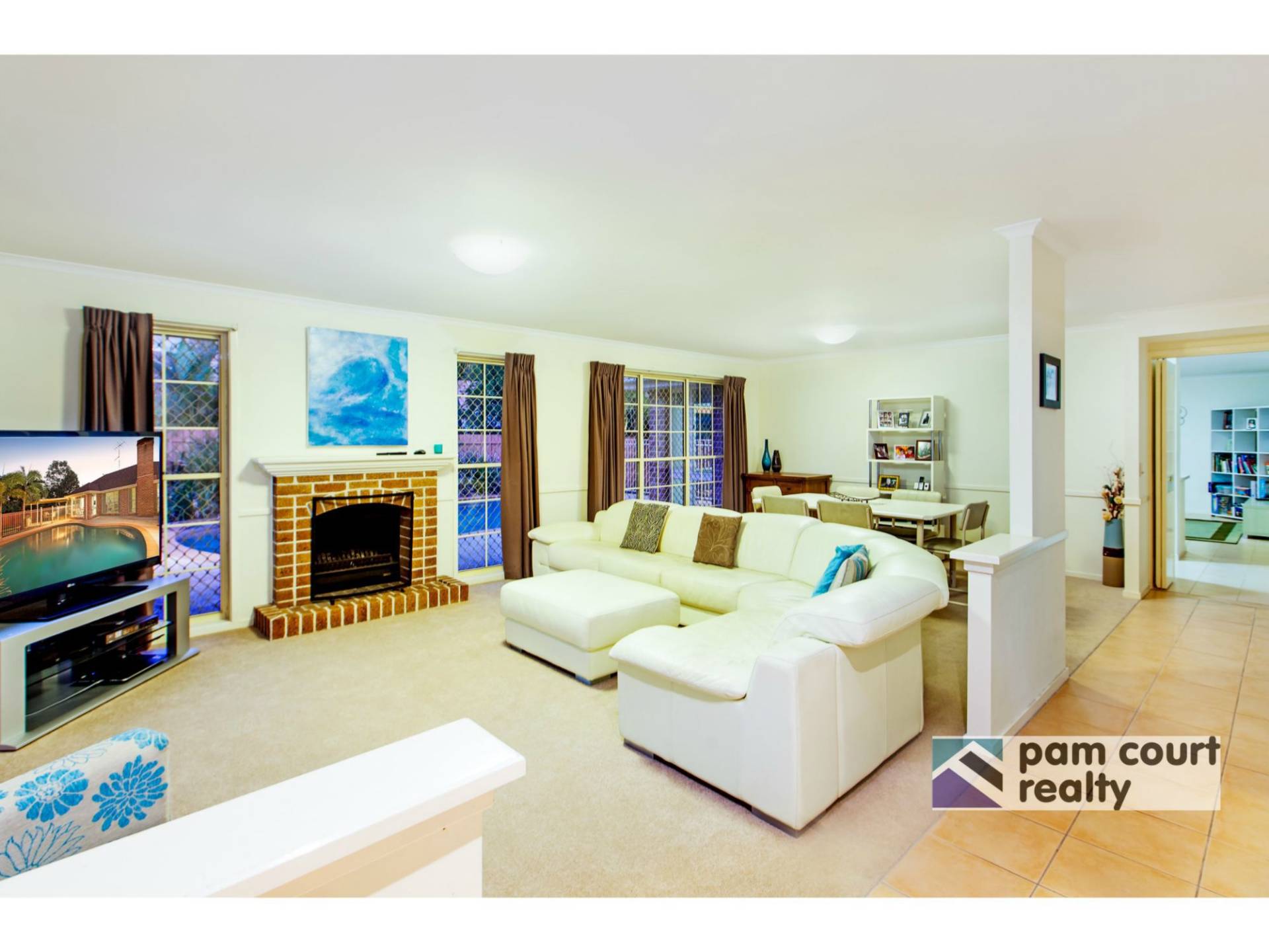 * Open plan formal lounge/dining area with functional fireplace