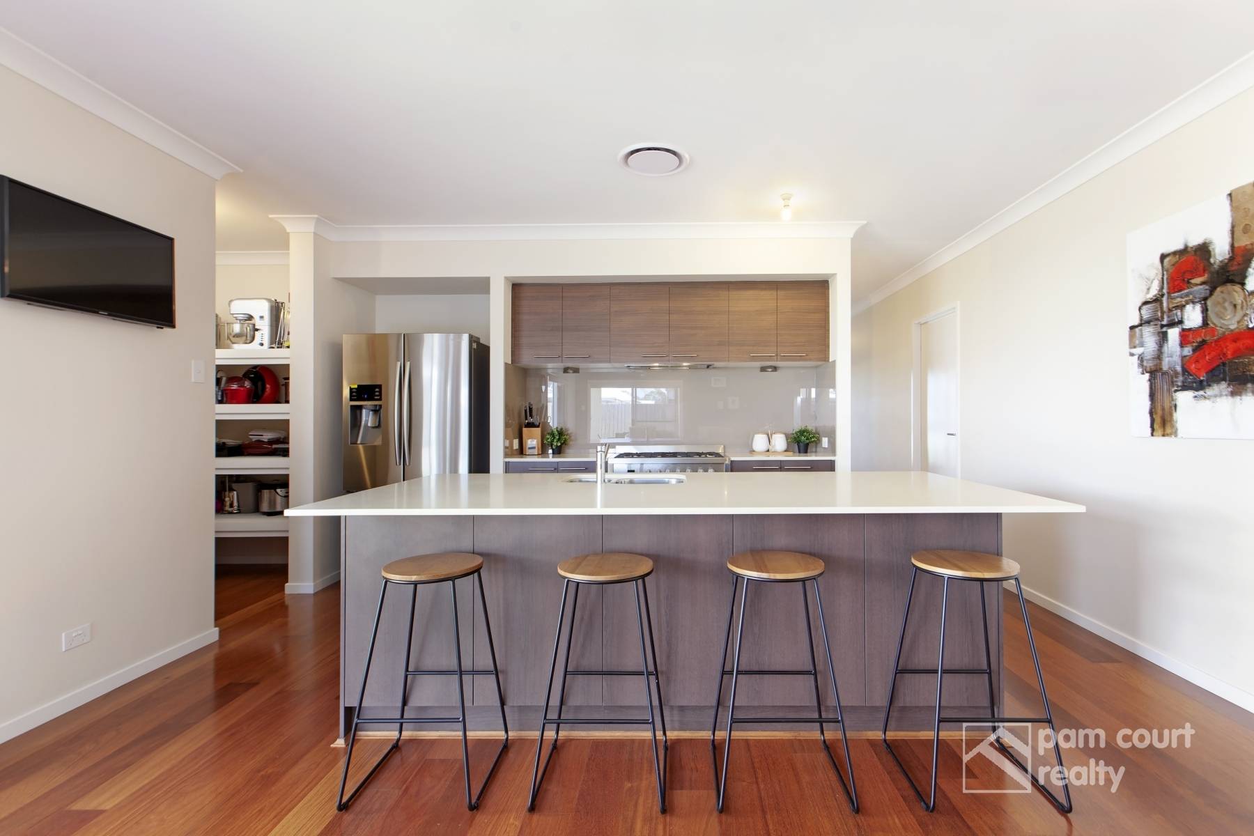 The centrally located kitchen is the heart of the home boosting extra wide granite benchtops with breakfast bar, 900mm stainless steel oven with gas cooktop, dishwasher, plumbed fridge space, large walk-in pantry and plenty of storage.