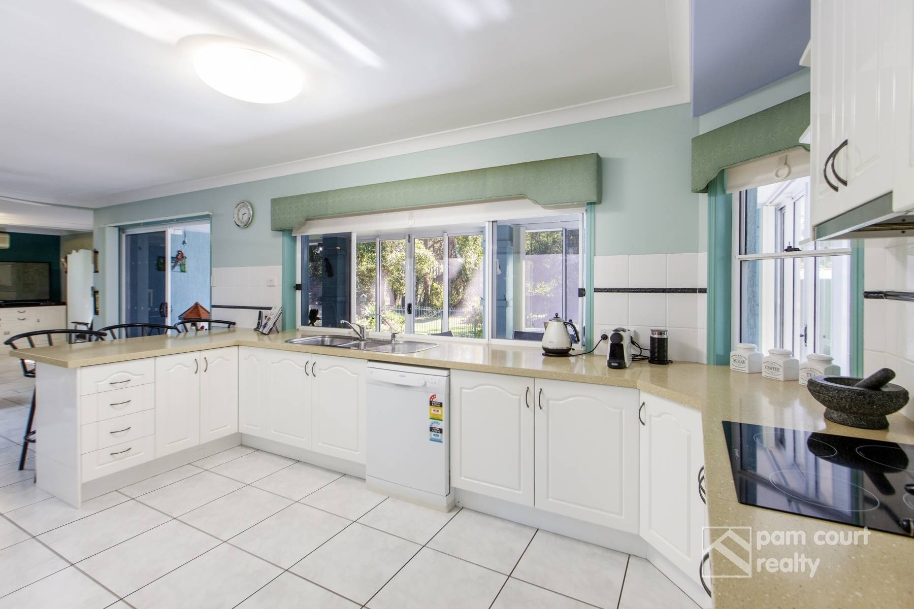 • Modern and stylish 2-pac kitchen with stone benchtops, induction cooktop, dishwasher, insinkerator, water filter, breakfast bar, double fridge cavity and walk-in pantry