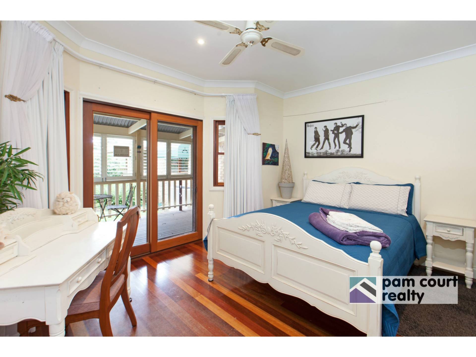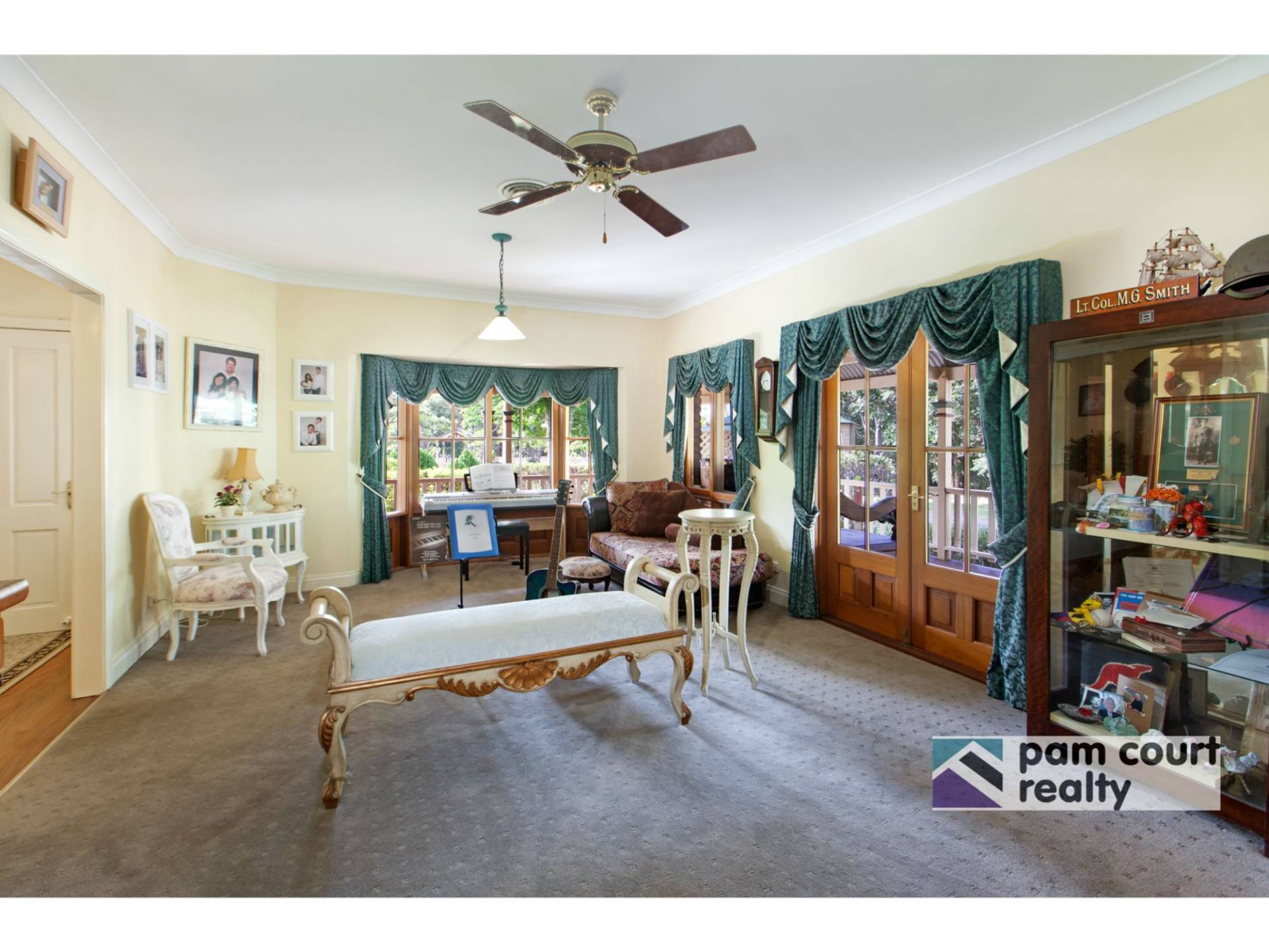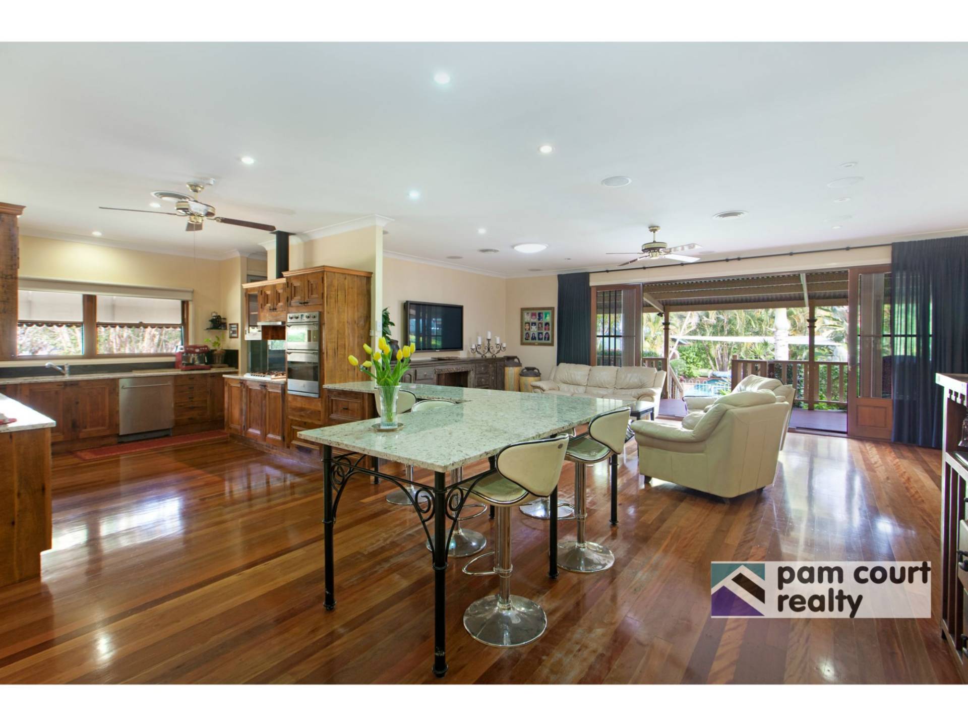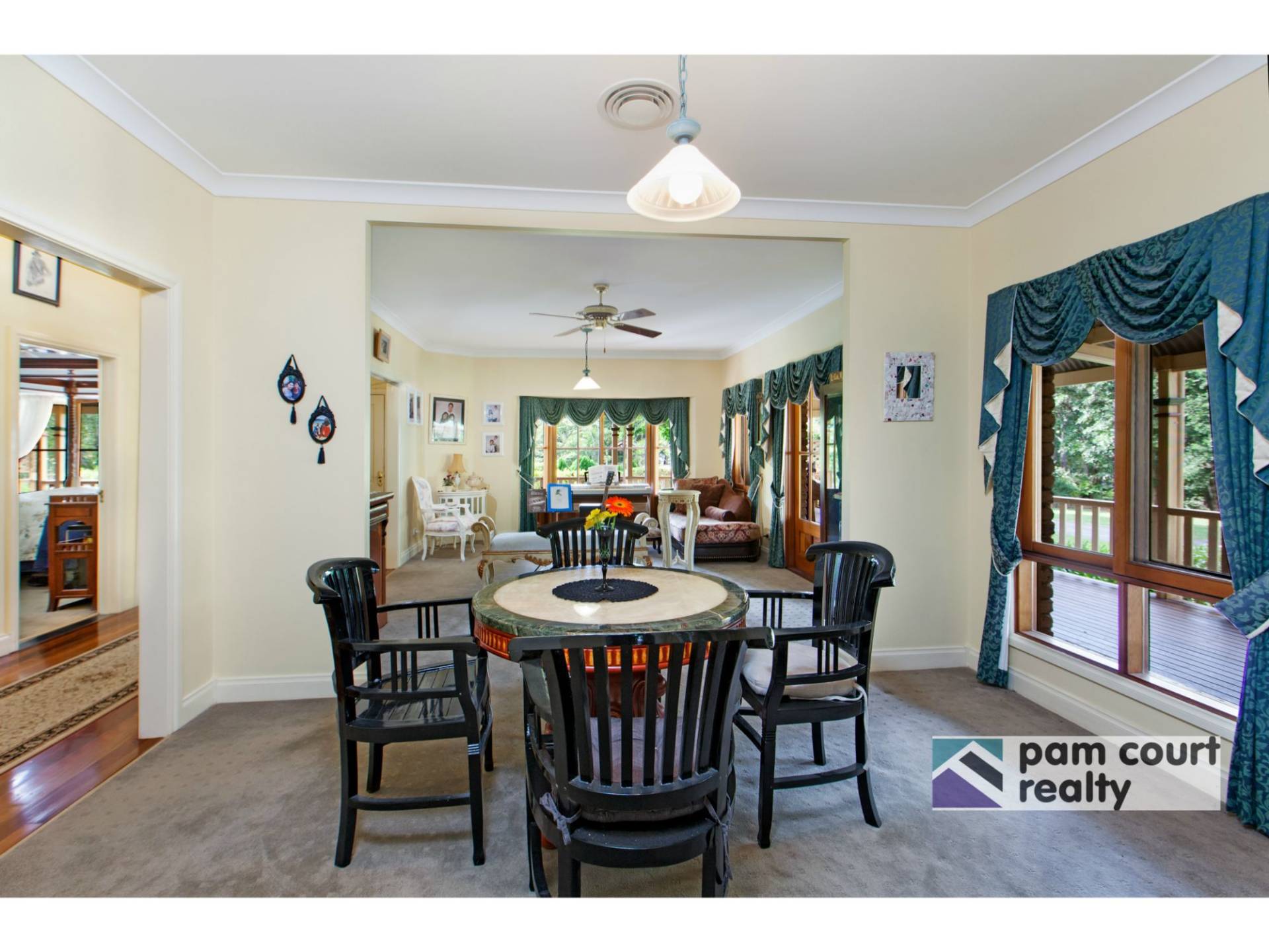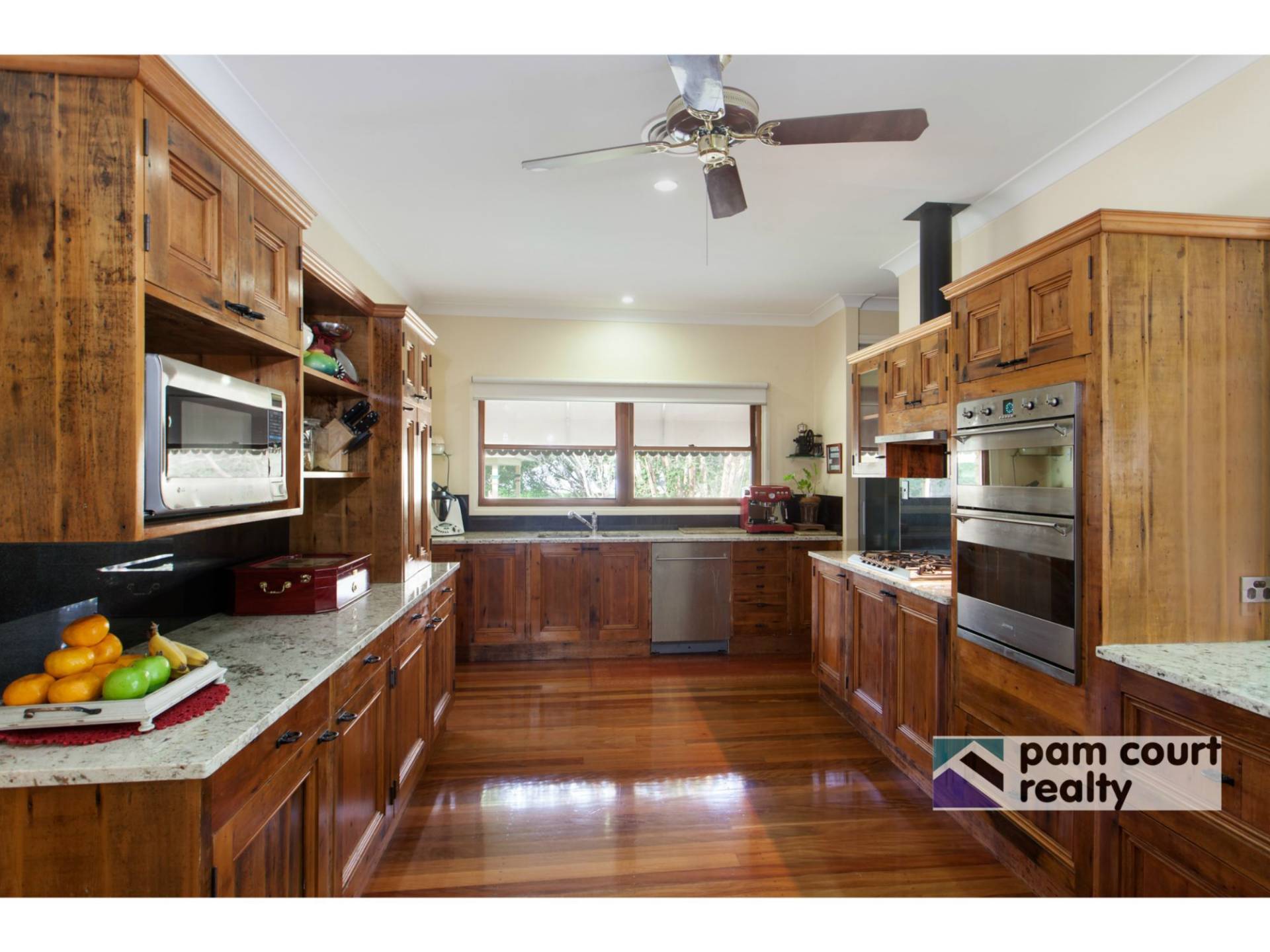 The federation charm is carried throughout the home with polished timber floors, high ceilings and French doors leading out to the wide verandahs. The generously appointed kitchen combines recycled timber with modern day luxuries such as granite benchtops, stainless steel appliances and a butler's pantry.