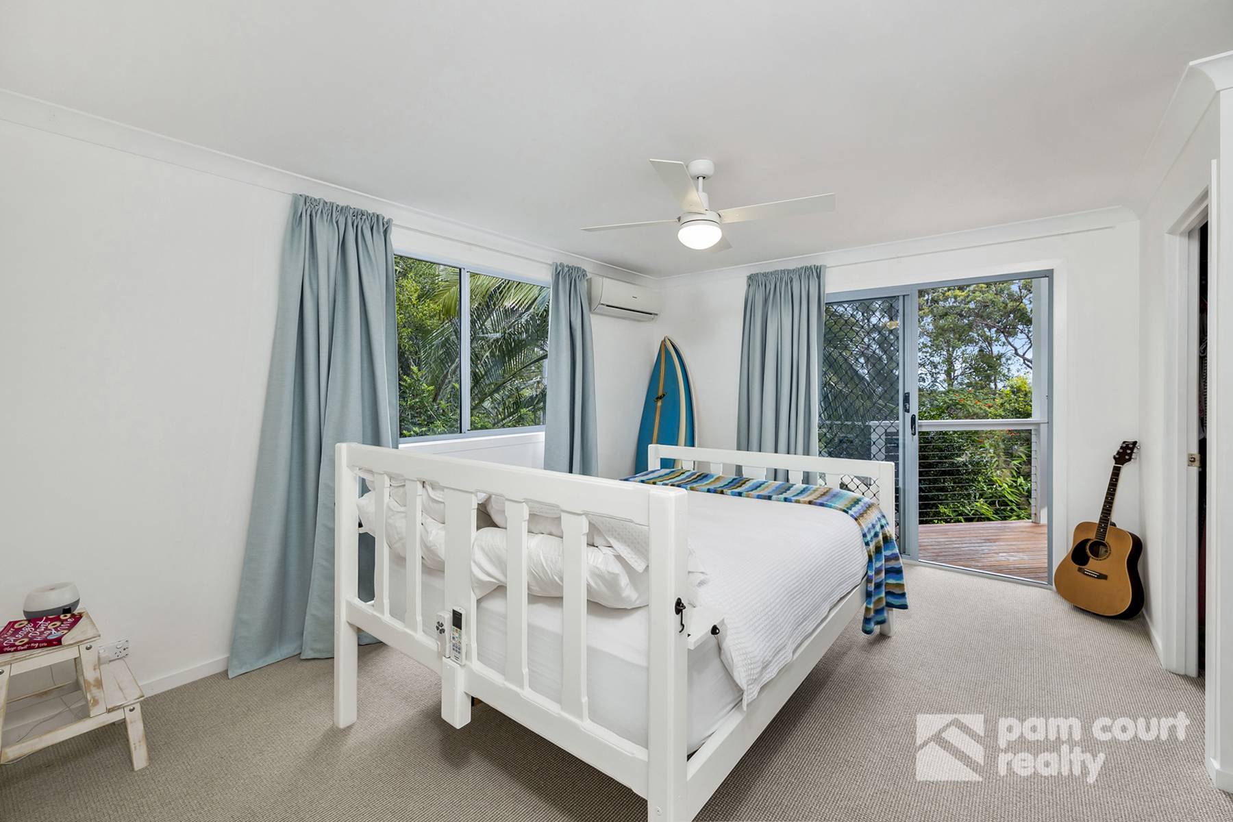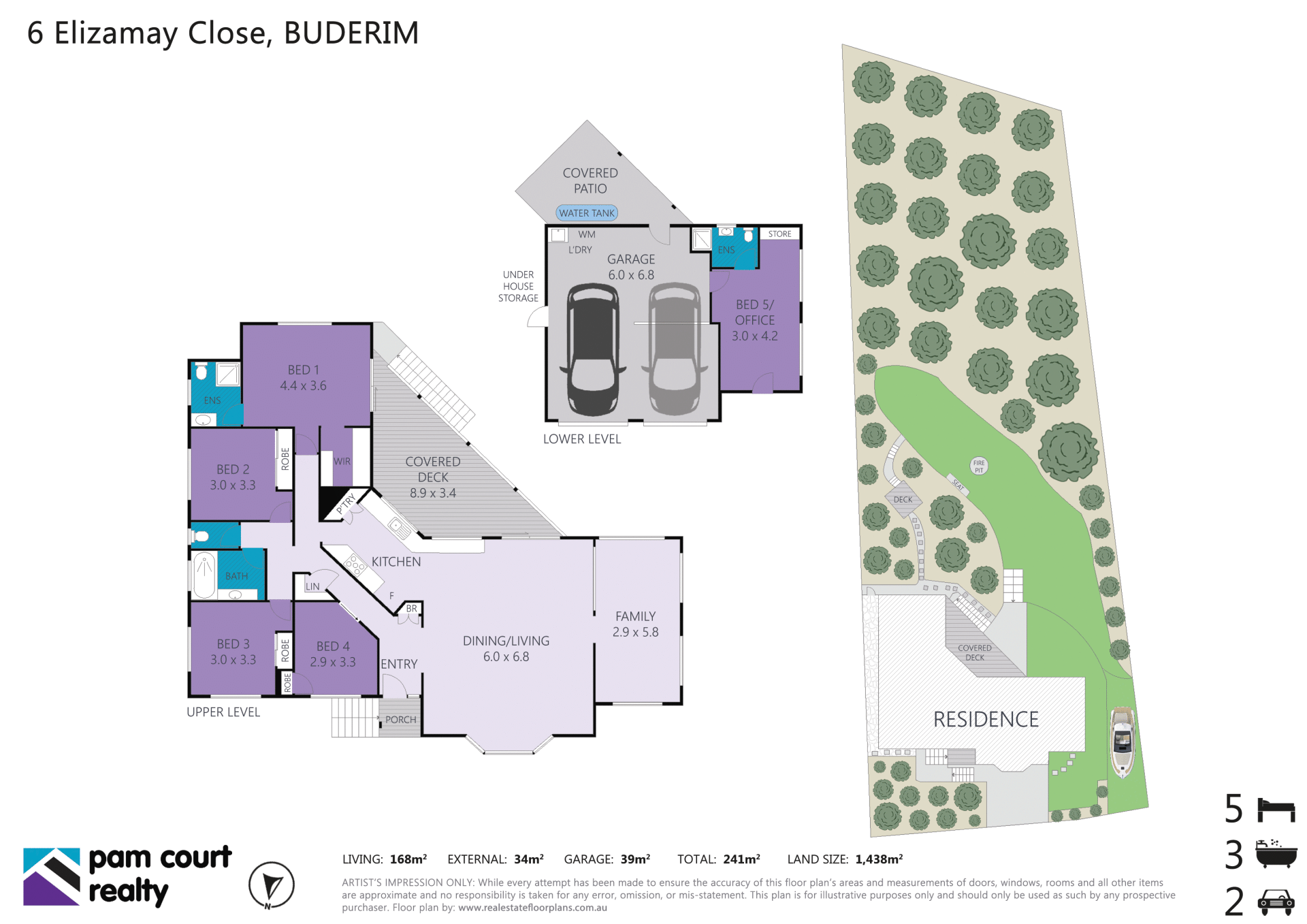 4 bedrooms and 2 bathrooms are housed upstairs including the master with access to the deck, a walk-in robe and an ensuite. The remaining 3 bedrooms have built-in robes and are just steps from the stylish main bathroom, while downstairs you will find the 5th bedroom/office with an ensuite, air-conditioning and separate entrance.