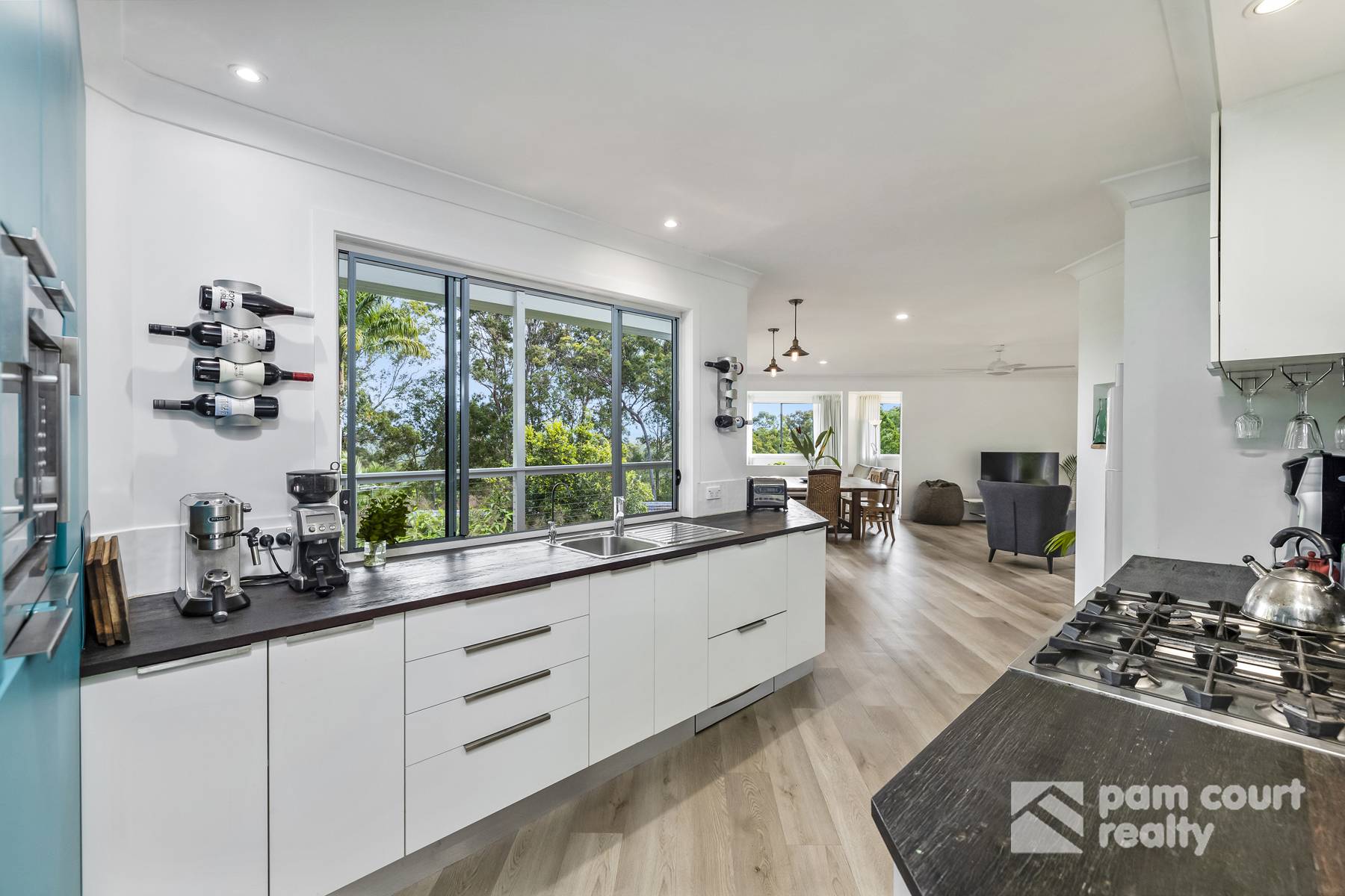 The living spaces are open and light-filled with large windows that frame the leafy outlook. Anyone who loves to cook will adore the stylish kitchen with quality appliances including an integrated dishwasher and a 900mm stainless steel oven with gas cooktop, water filter, ample soft close drawers & cupboards for storage and breakfast bar seating cleverly installed along a window so you enjoy the views and established gardens with every meal.