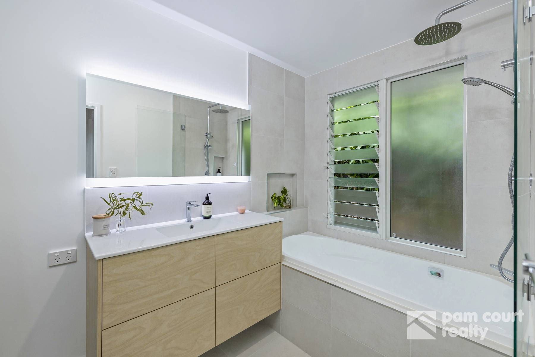 • Main bathroom, toilets and ensuite completely removed, re-waterproofed and replaced with quality fittings & fixtures.  Both bathrooms now have touch mirrors with lighting and de-mister, frosted louvres & integrated exhaust fans. The main bathroom also enjoys an extra-long bathtub and heat lamp