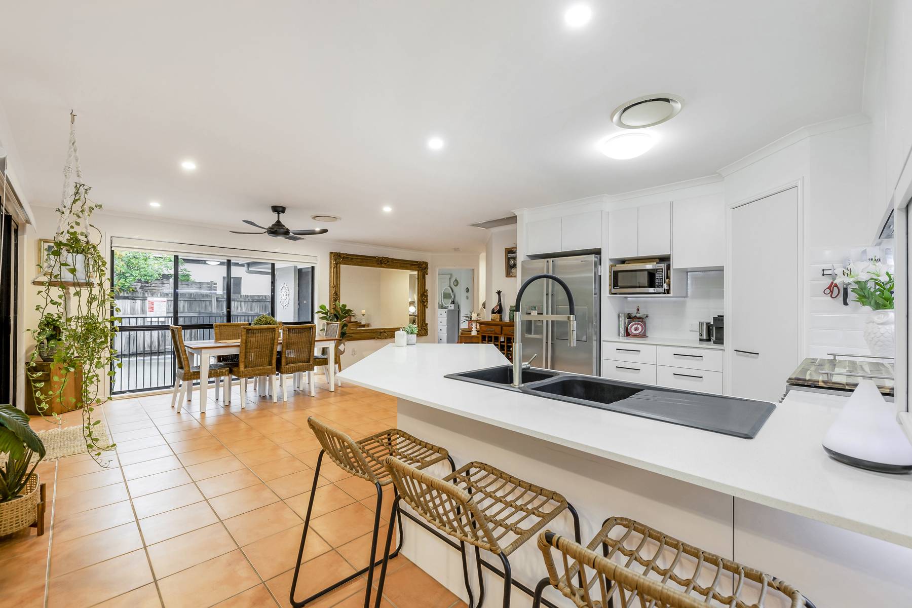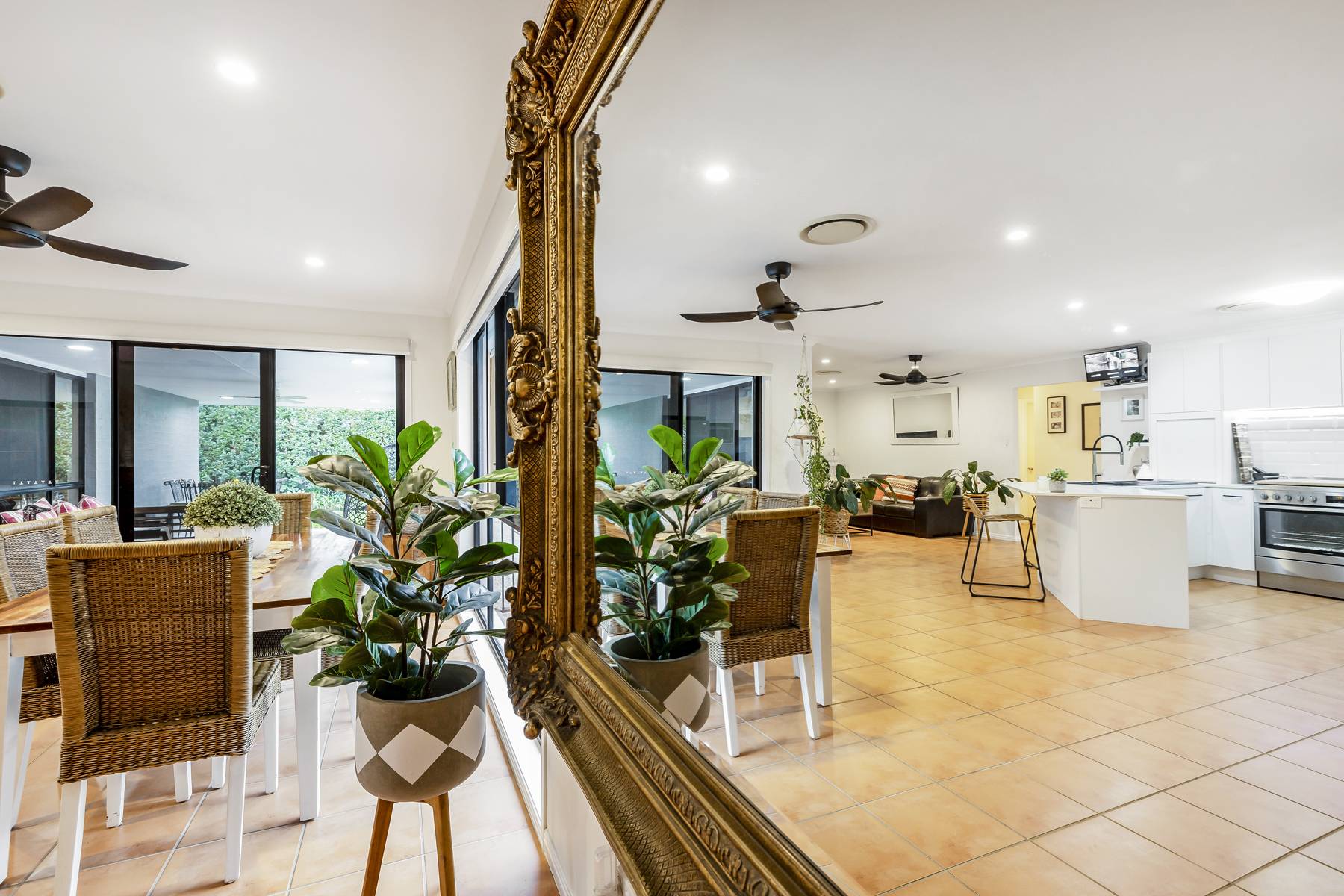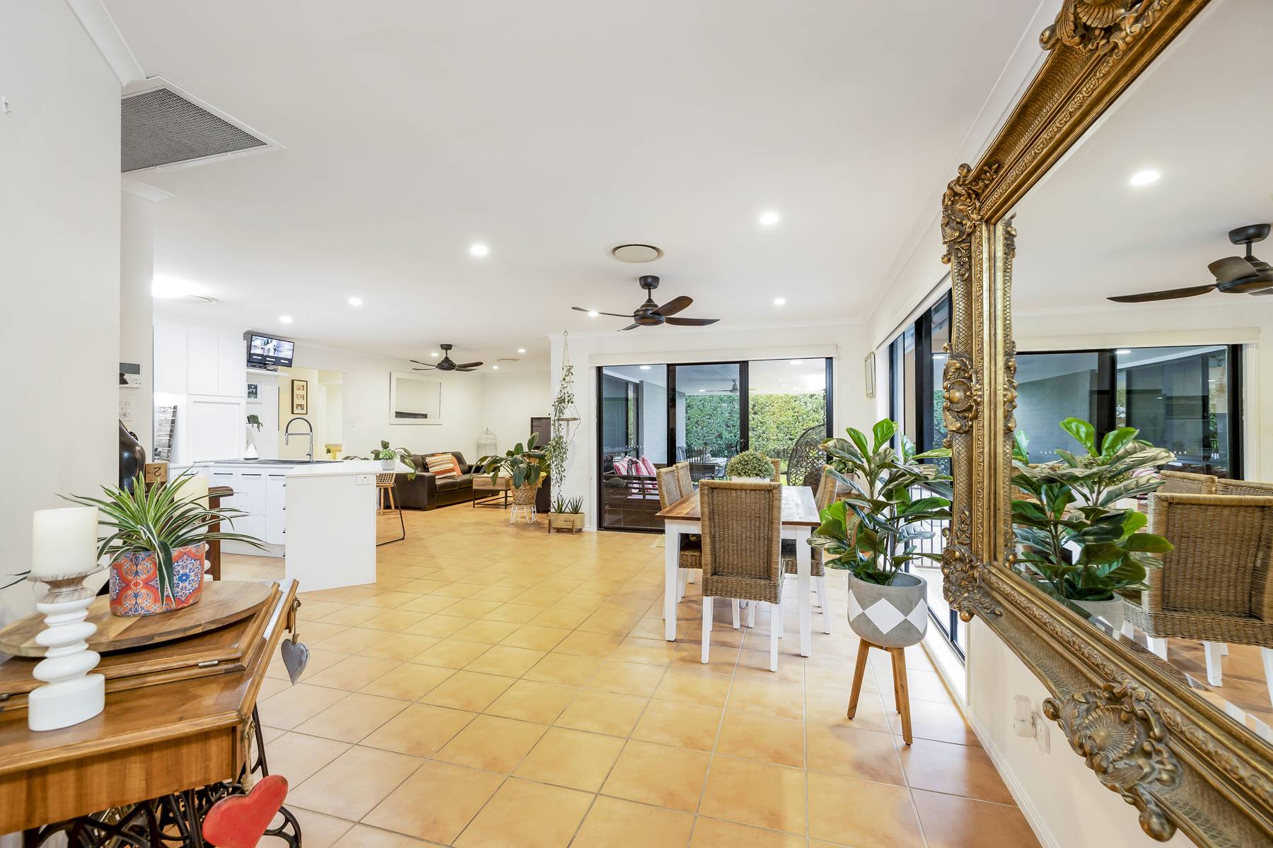 • The house is kept cool in summer and warm in winter with ducted air-conditioning and ceiling fans throughout