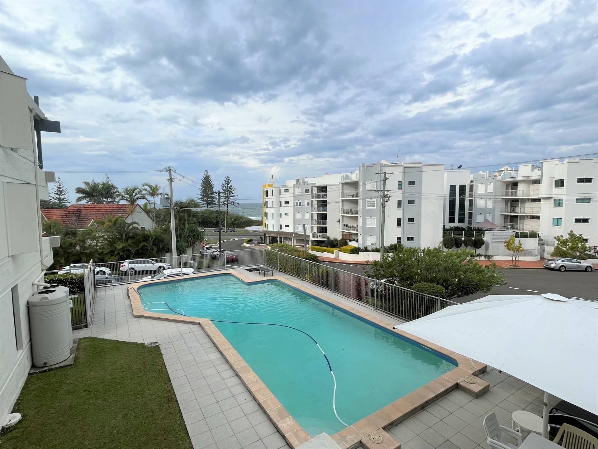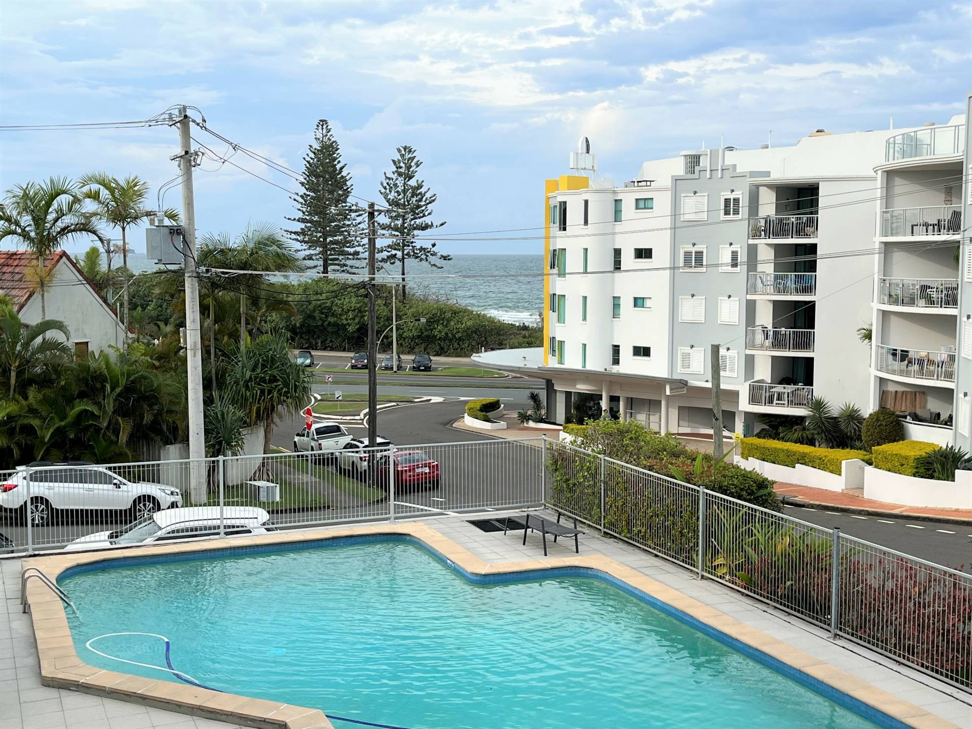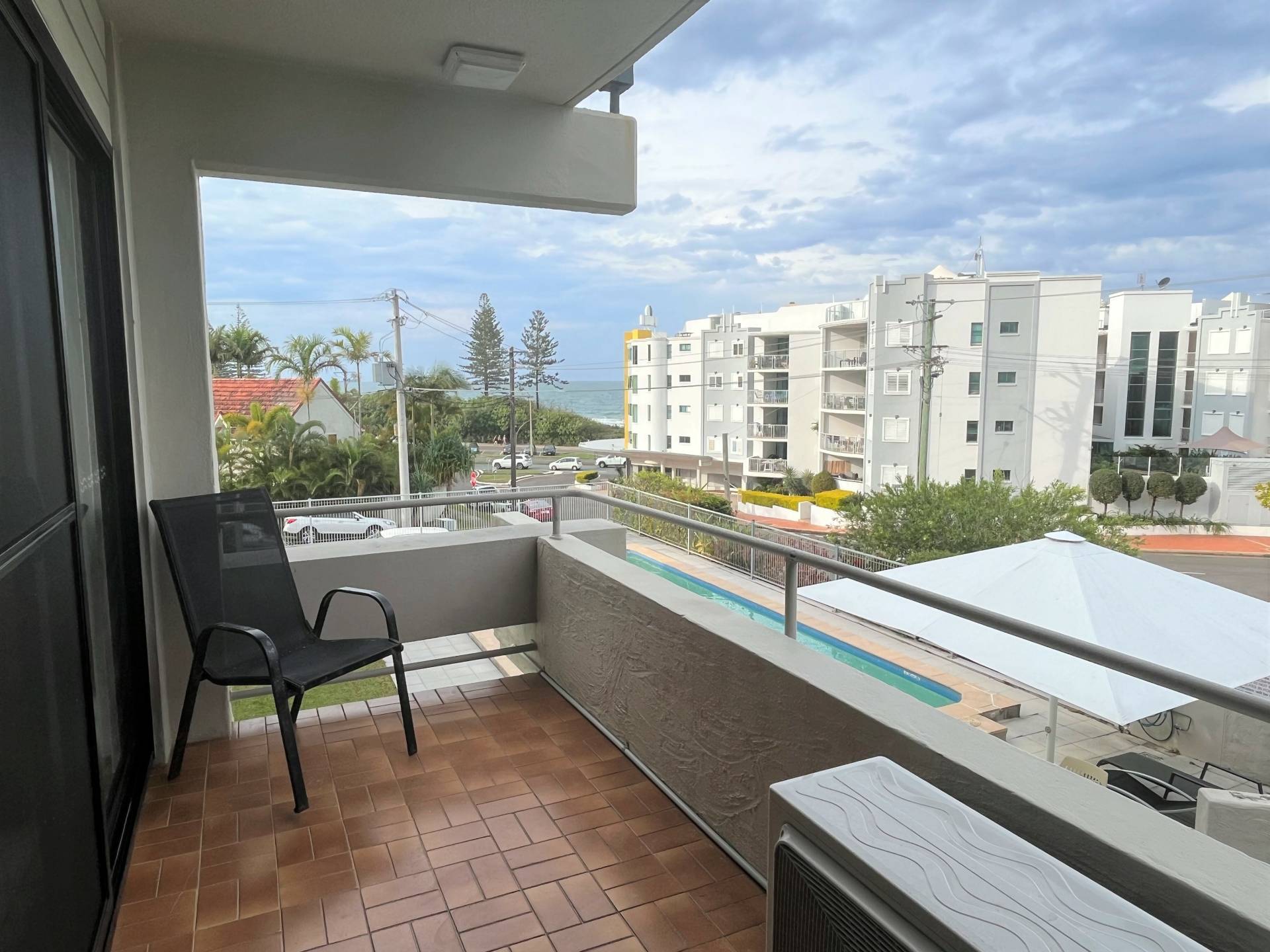 Located just 100 meters from Alexandra Headland's patrolled beach, this unit could not be in a better position. First floor apartment, one street away from beach, cafes and Alex Surf Life Saving Club. Beautiful outlook with ocean views from the lounge room and master bedroom. Both bedrooms have built in robes, new carpet, new blinds and new ceiling fans. The master bedroom has a new split system air-conditioner. Modern functional kitchen with electric cooktop. Neutral clean bathroom with laundry (washing machine can stay if needed). Sparkling inground pool. Single lock up garage with added storage cupboards. Water usage included.