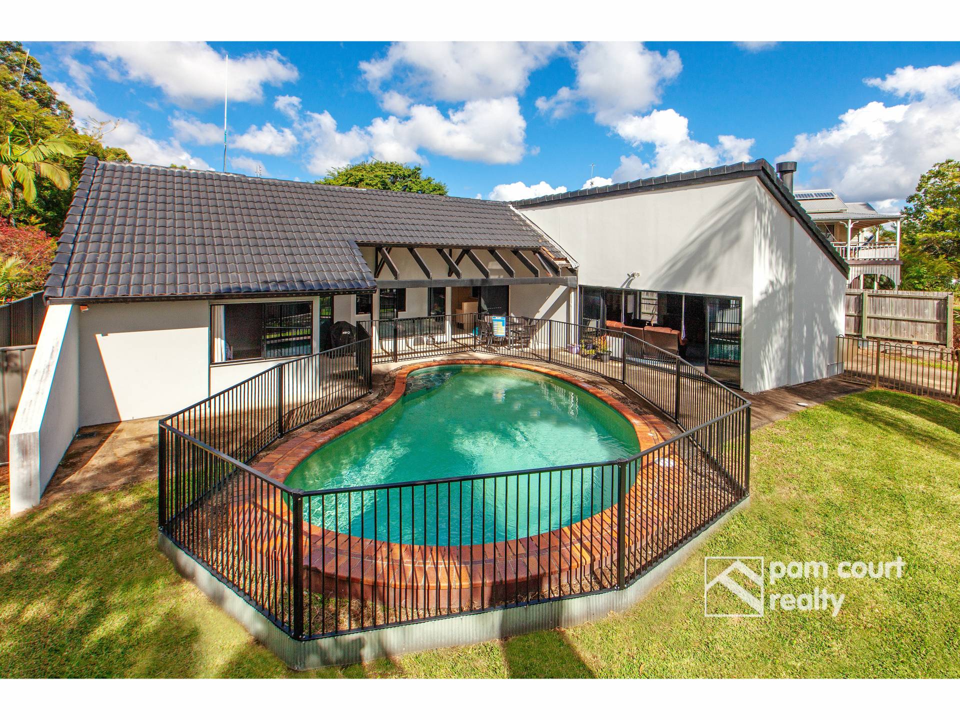 Stepping outside you’ll find a delightful patio area, a sparkling in-ground pool and a large grassy yard from which you can take in the impressive views. The back of the block is clear and ready to build a large shed or granny flat (STCA).