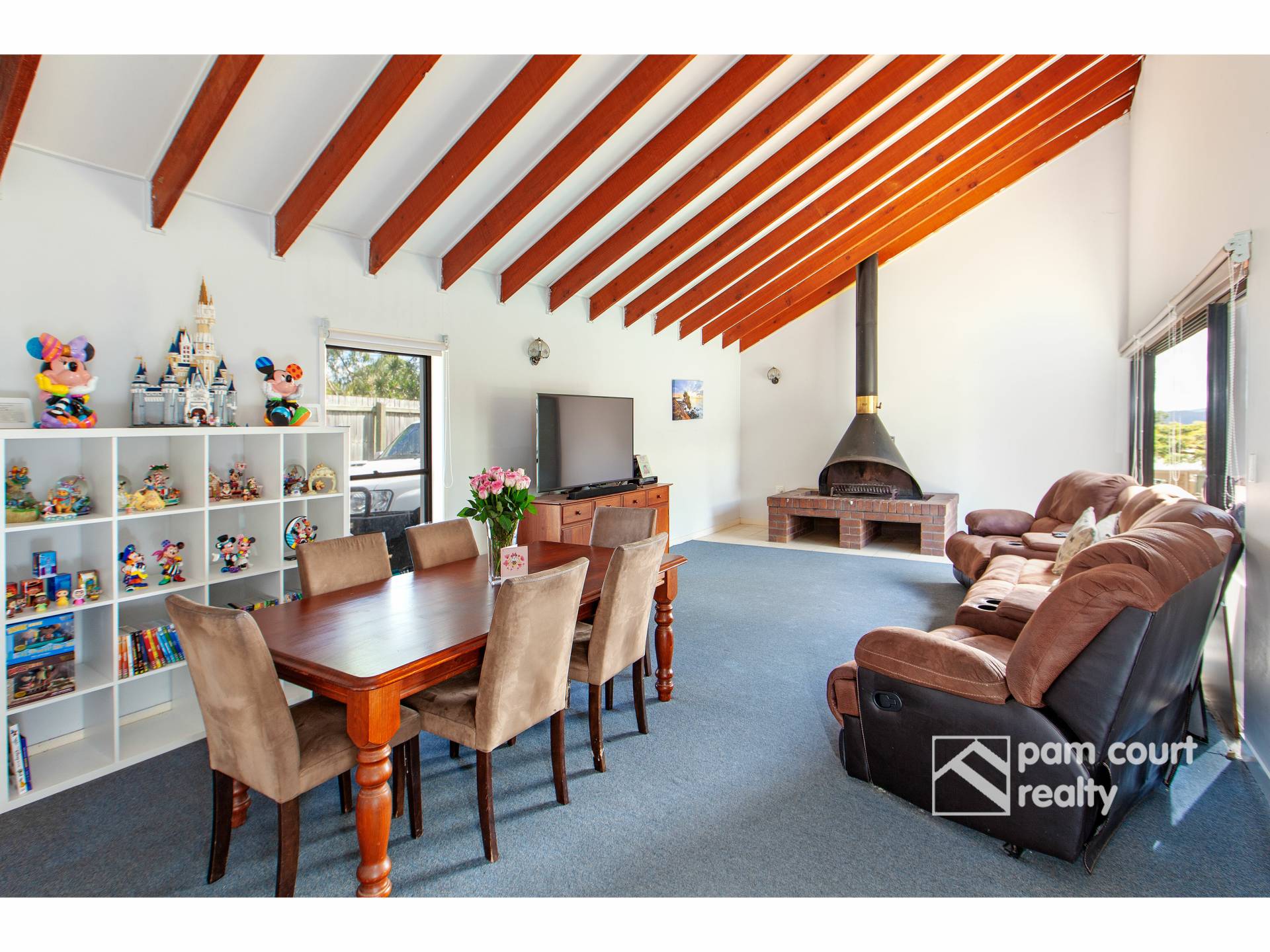 ·         2 separate living zones, lounge room with raked ceilings and fireplace for cooler nights