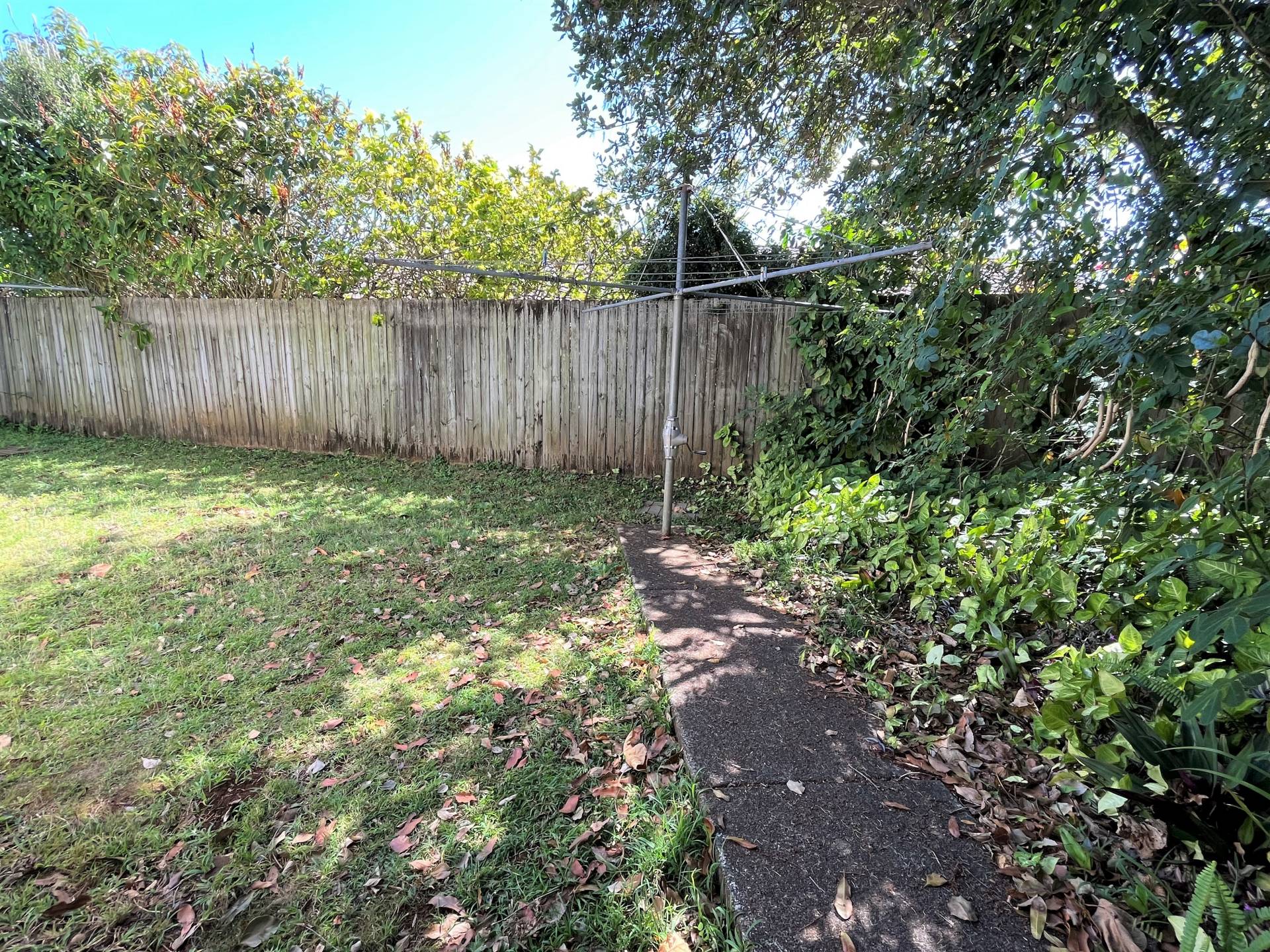 Secure, fully fenced private yard with washing line
