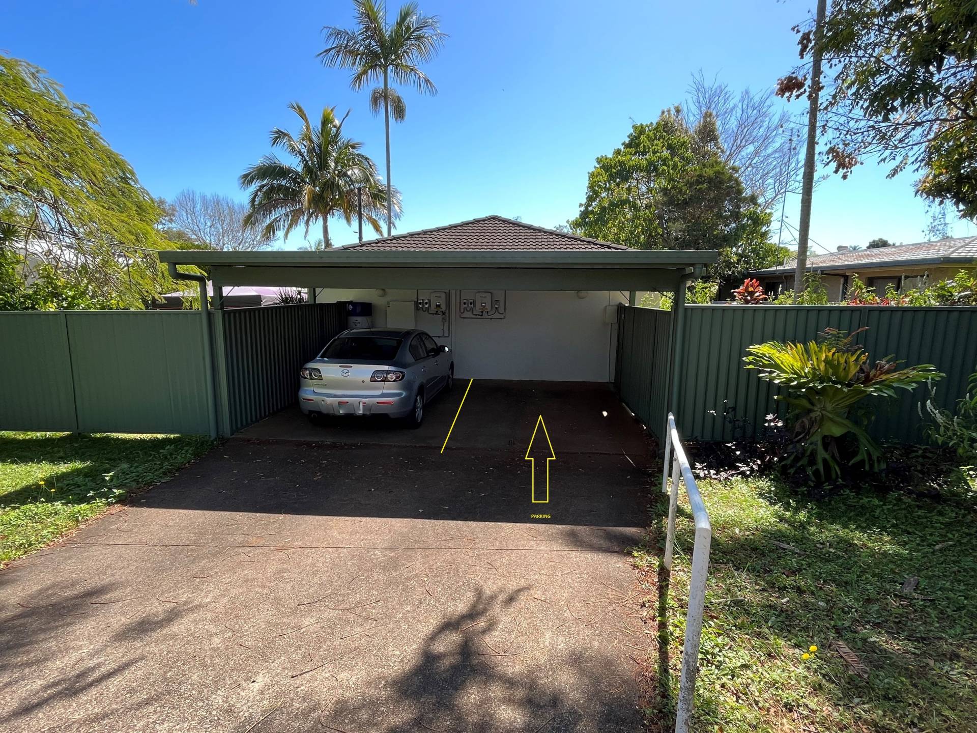 Covered carport at the front of complex for 1 car and extra parking on the road available
