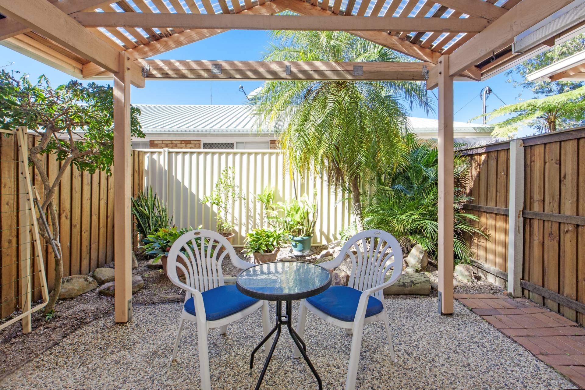 ·         Private outdoor courtyard with easy-care gardens and covered pergola