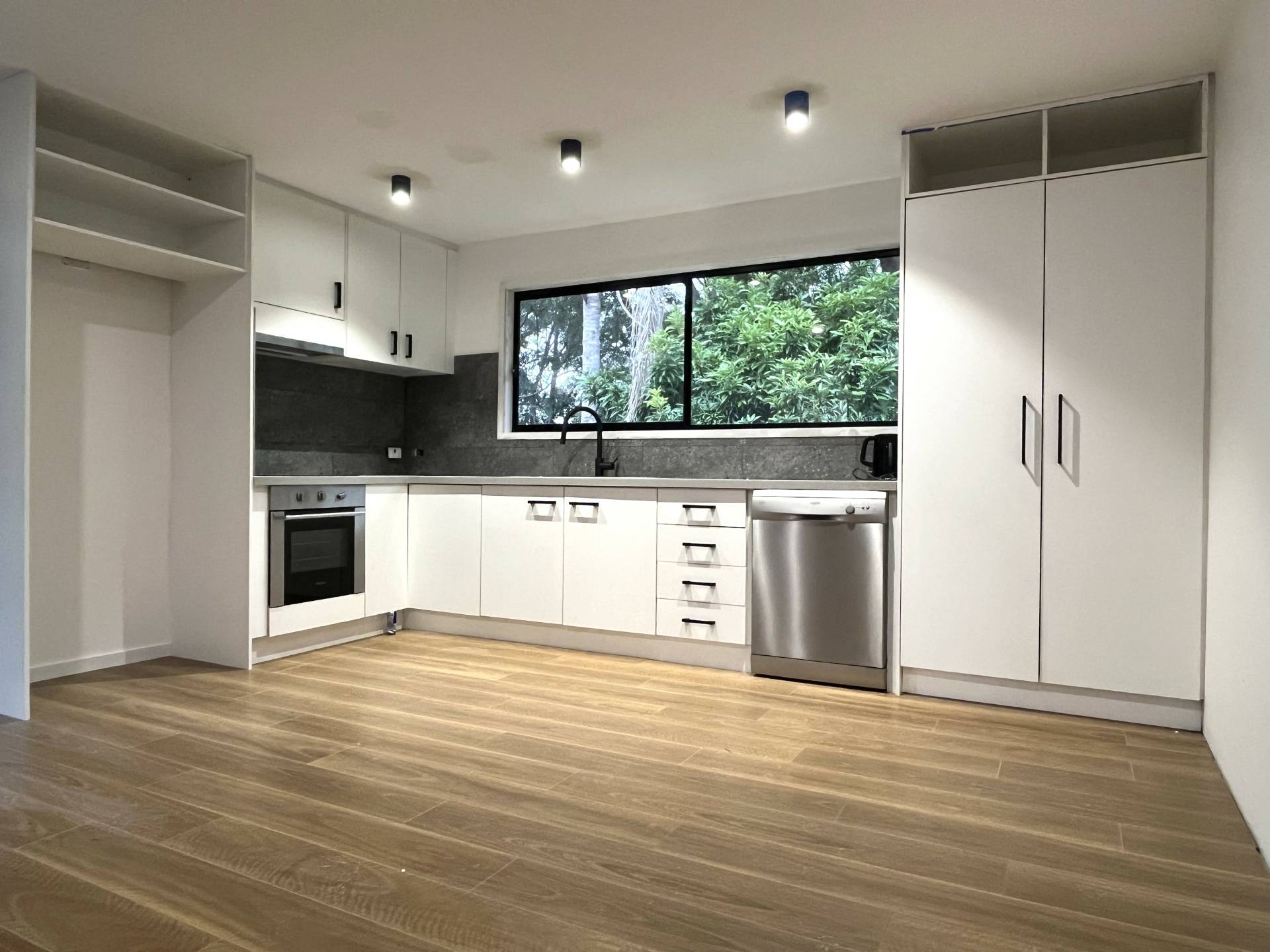 Renovated kitchen with induction cooktop and dishwasher