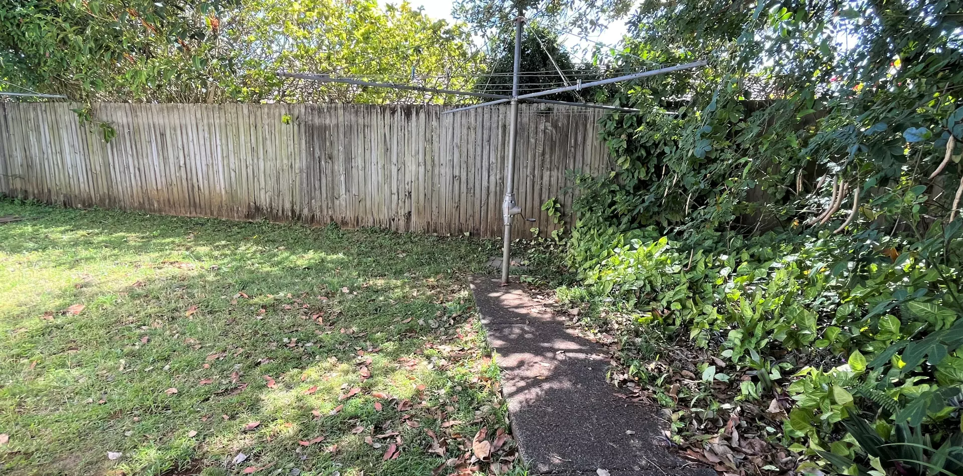 Secure, fully fenced private yard with washing line