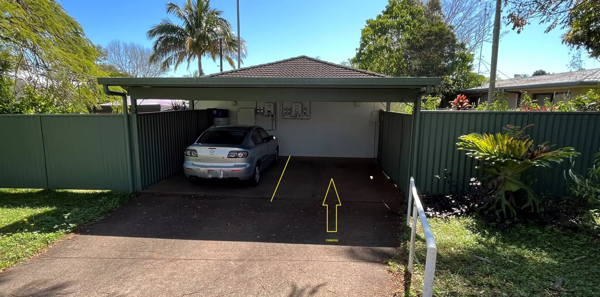 Covered carport at the front of complex for 1 car and extra parking on the road available