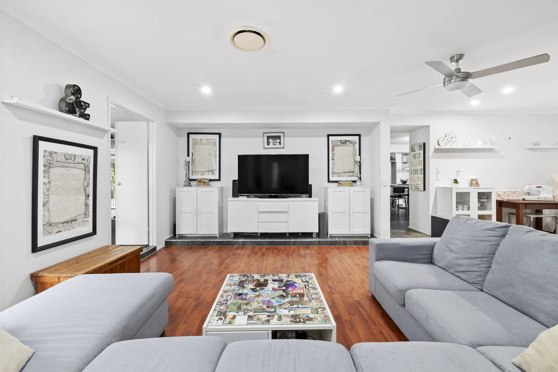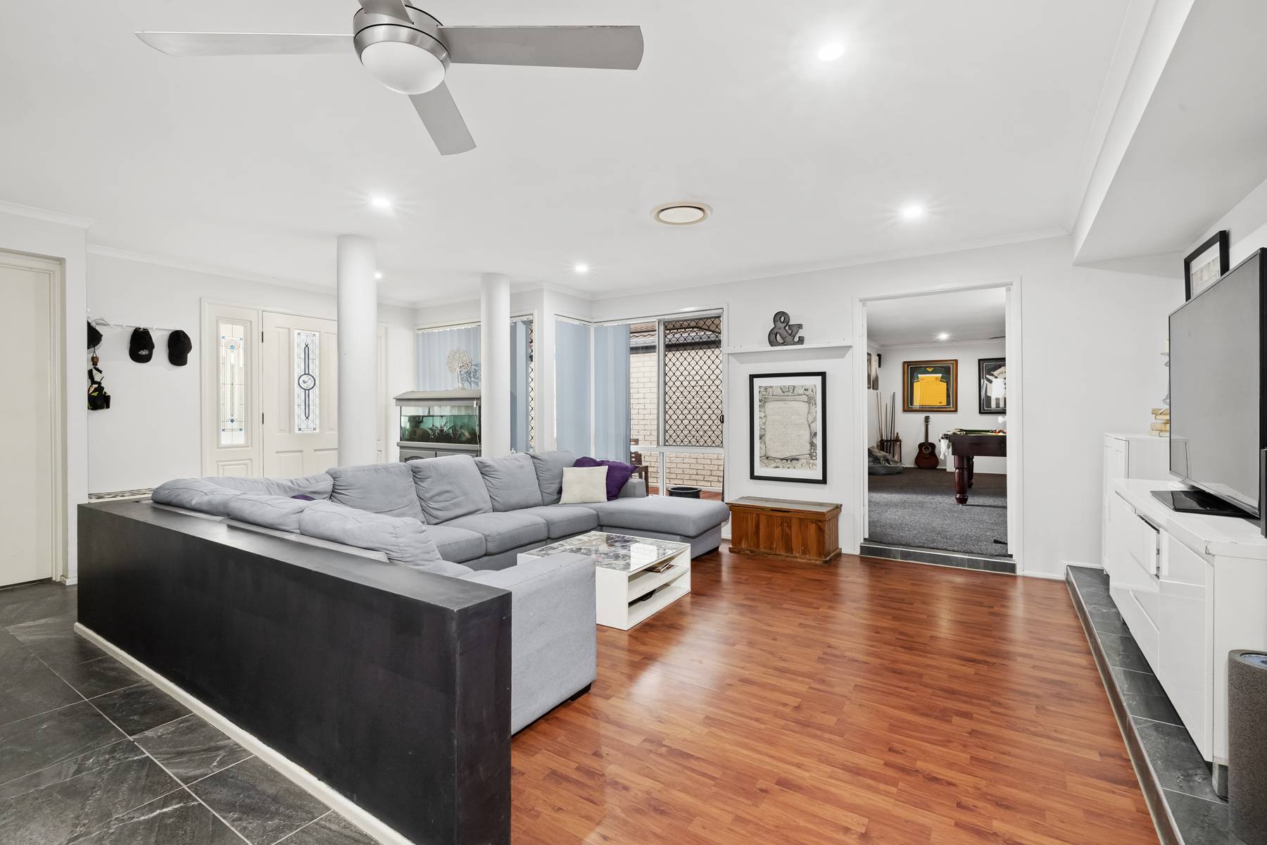 •    Three separate living areas – sunken lounge, family room and large rumpus