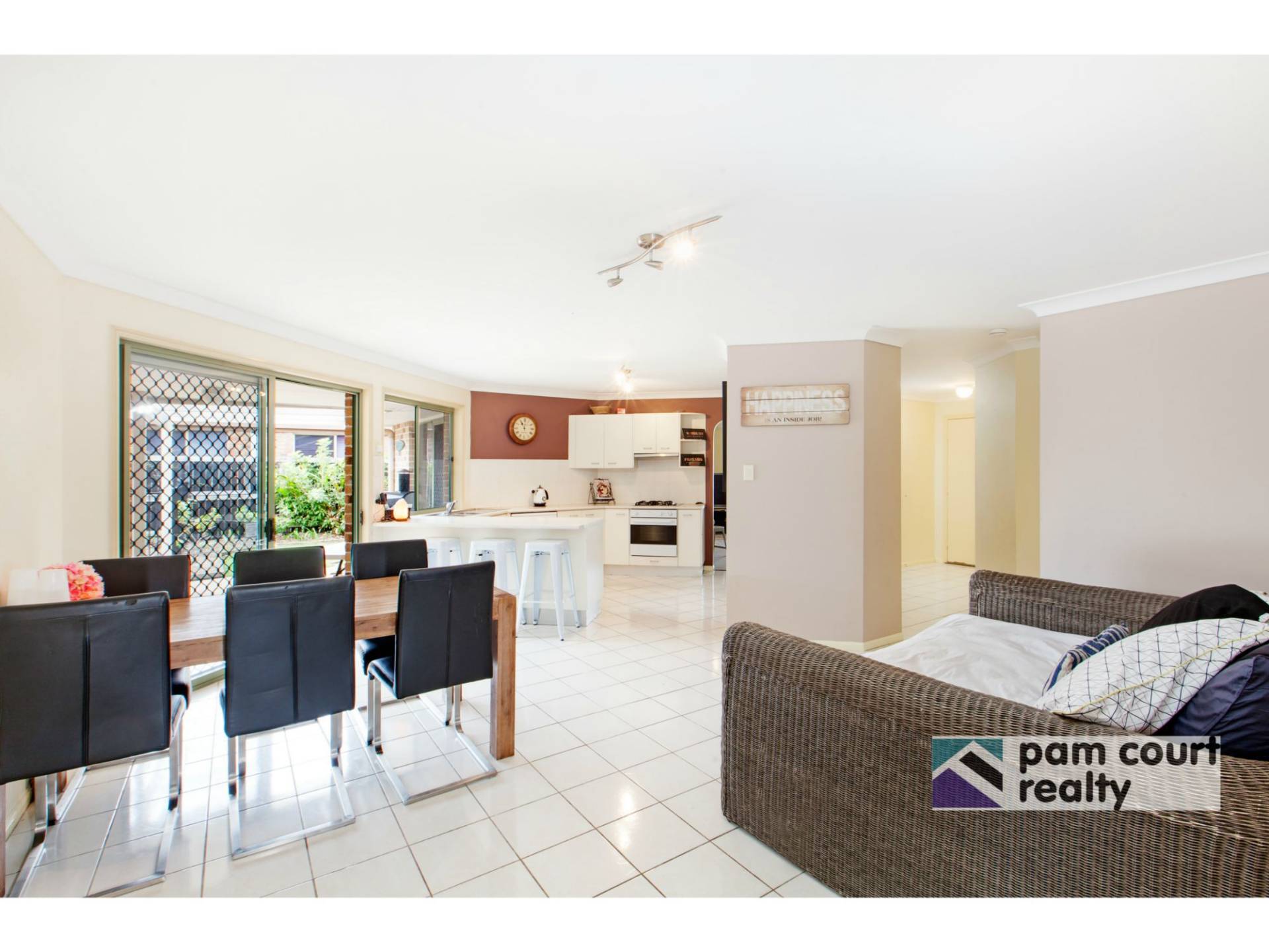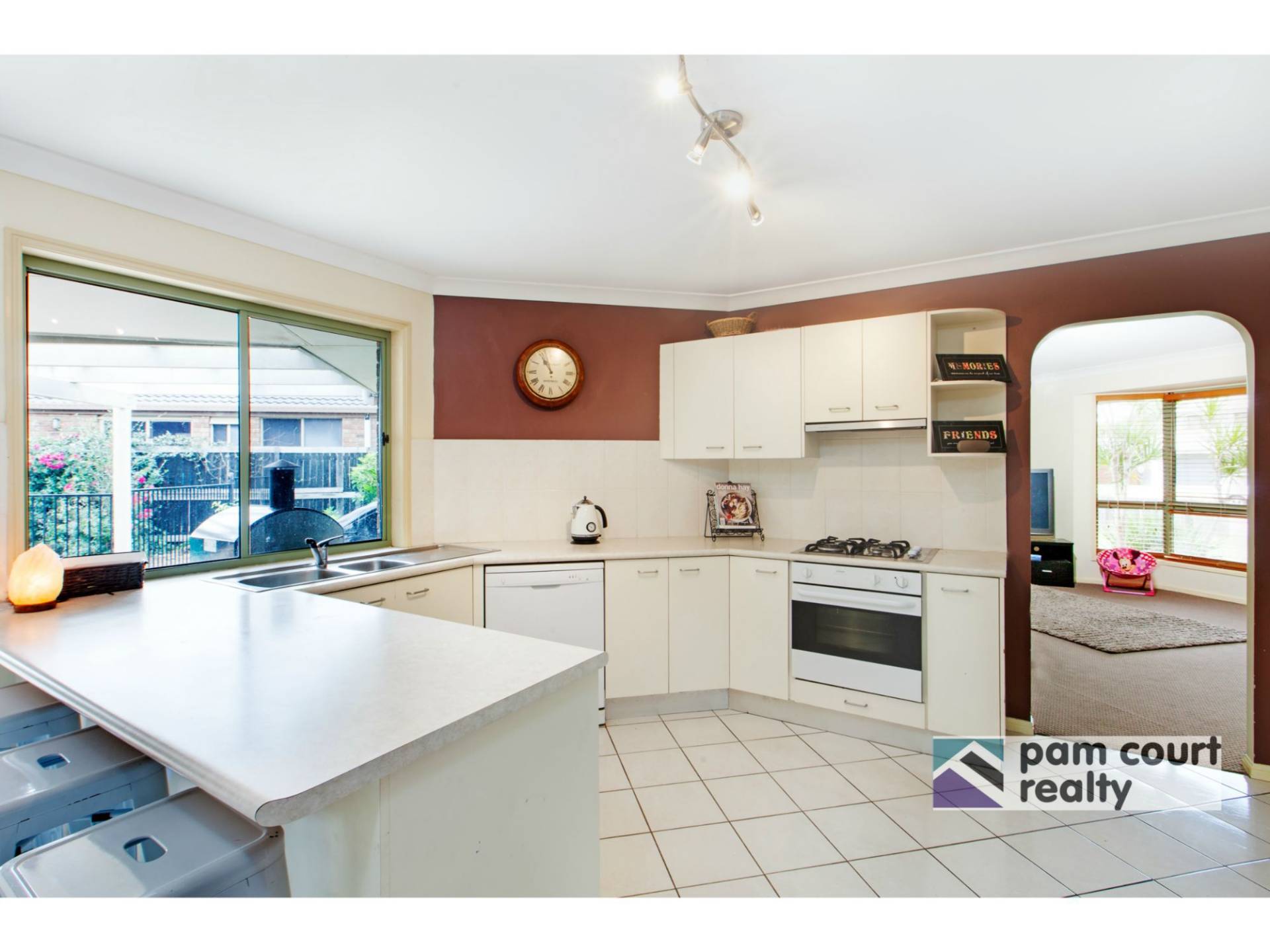Offering a unique floor plan this four bedroom ensuite home includes formal lounge and dining as well as a family room overlooking the wrap-around kitchen, with gas cooktop, dishwasher and family-sized pantry .