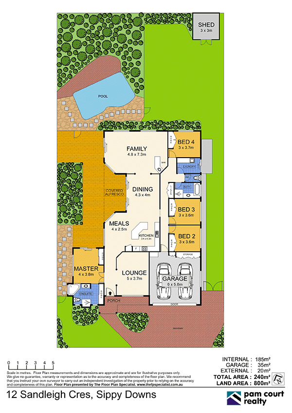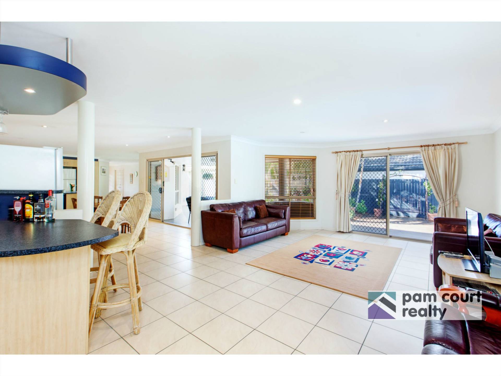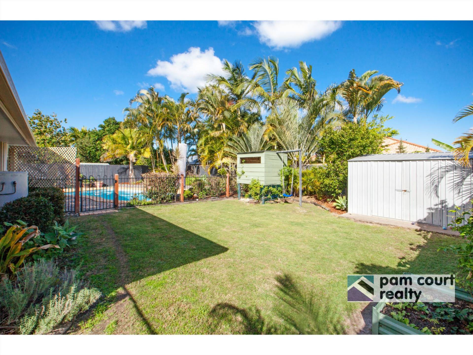 At the back of the home you will find a large tiled family room with bar looking out to the sparkling inground saltwater pool and separate grassed area with kids' playhouse/swing and garden shed.